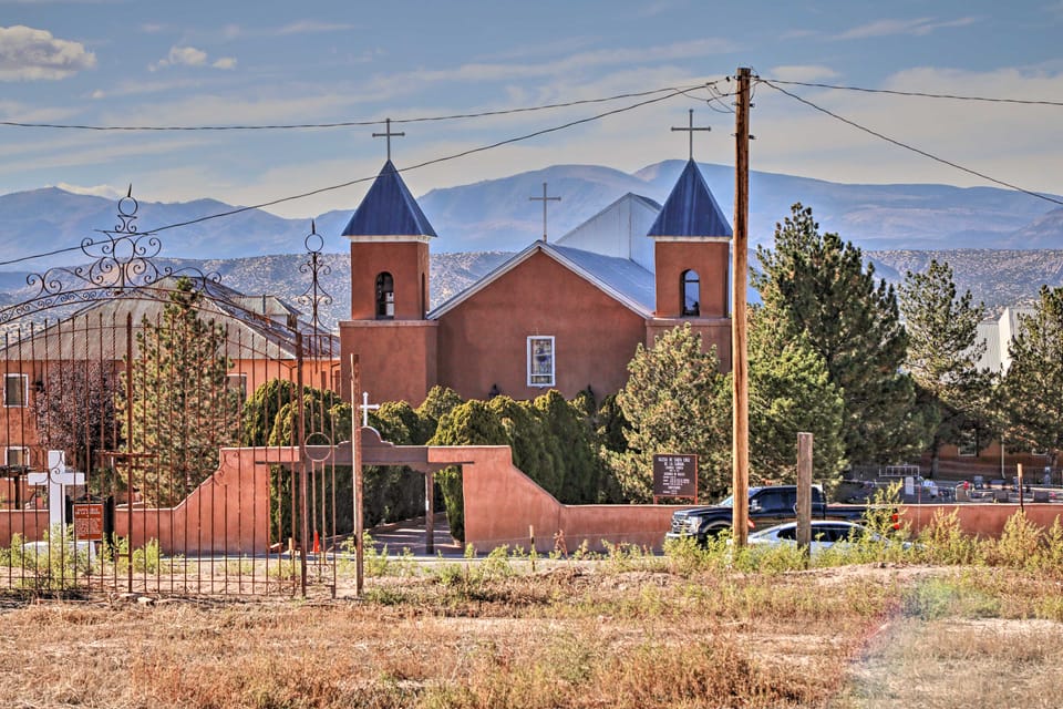SANTA FE (~25 miles): Meow Wolf Santa Fe, Georgia O’Keeffe Museum, New Mexico Museum of Art, The Cathedral Basilica of St. Francis, Santa Fe Plaza, Santa Fe Hot Springs, Santa Fe Farmers Market, Santa Fe Botanical Garden, historical walking tours, art gallery walks