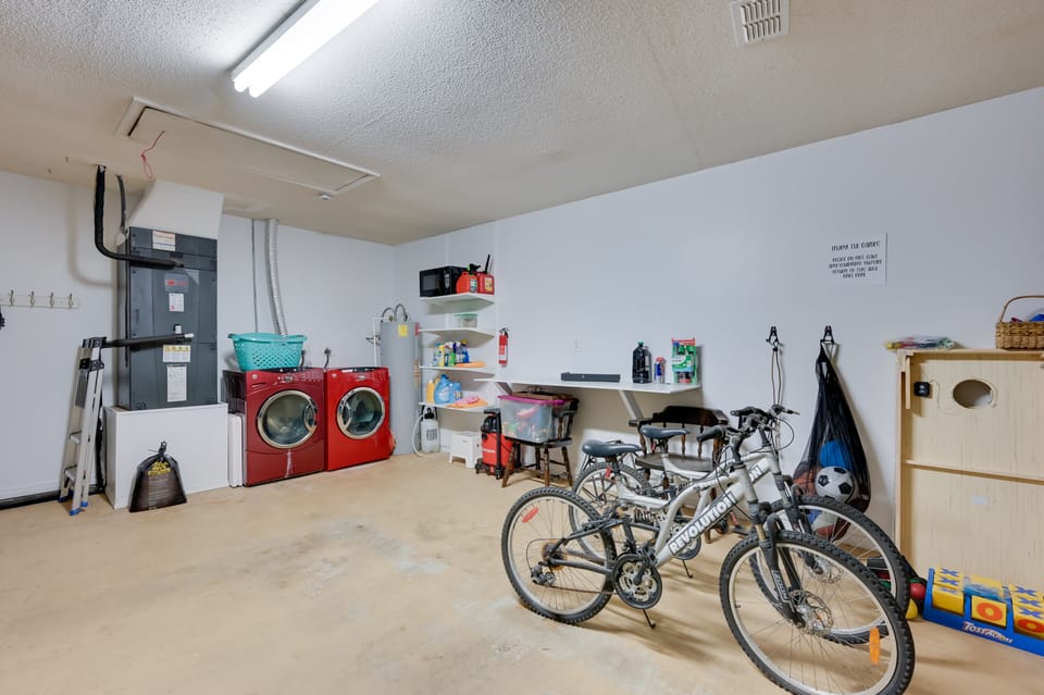 GENERAL: Linens, towels, washer & dryer, central air conditioning & heating, ceiling fans, complimentary toiletries, hair dryer, iron/board, keyless entry