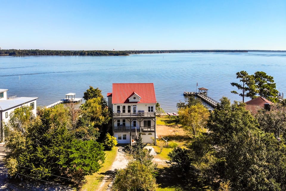 Experience an unforgettable waterfront retreat at this charming vacation rental in Sneads Ferry! Complete with an outdoor bar, a deck with stunning views, and a spacious interior, this 3-bedroom, 3.5-bath home has everything needed during your coastal getaway! Mere steps from the back door, there's private water access and a beautiful lounge area perfect for relaxing. Spend your days fishing off the shore, then prepare dinner in the fully equipped kitchen and gather around the dining table.