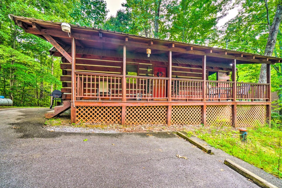 Escape to the Smoky Mountains and relax in a scenic setting when you book this cabin in a lovely wooded area! The 2-bedroom, 2-bathroom vacation rental features everything you need for your dream Sevierville getaway including a private hot tub, a deck, a gas fireplace, and lovely wood finishes for a true cabin feel. When you're not relaxing at home, lace up your hiking boots to explore Great Smoky Mountain National Park or gear up for some family fun at The Island in Pigeon Forge.