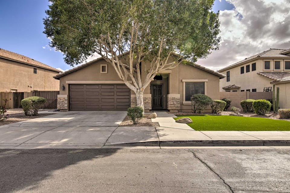 Luxury amenities, desert adventure, and family bonding moments are right around the corner at this 3-bedroom, 2-bathroom Mesa home. This vacation rental offers an open interior and a sprawling backyard oasis with everything you need for a relaxing stay. Have a BBQ out by the pool while the kids enjoy the slide! Phoenix and Scottsdale attractions like OdySea Aquarium are just a short drive away. You can also explore nearby places like Skyline Park or Bell Bank Park for some great family fun.