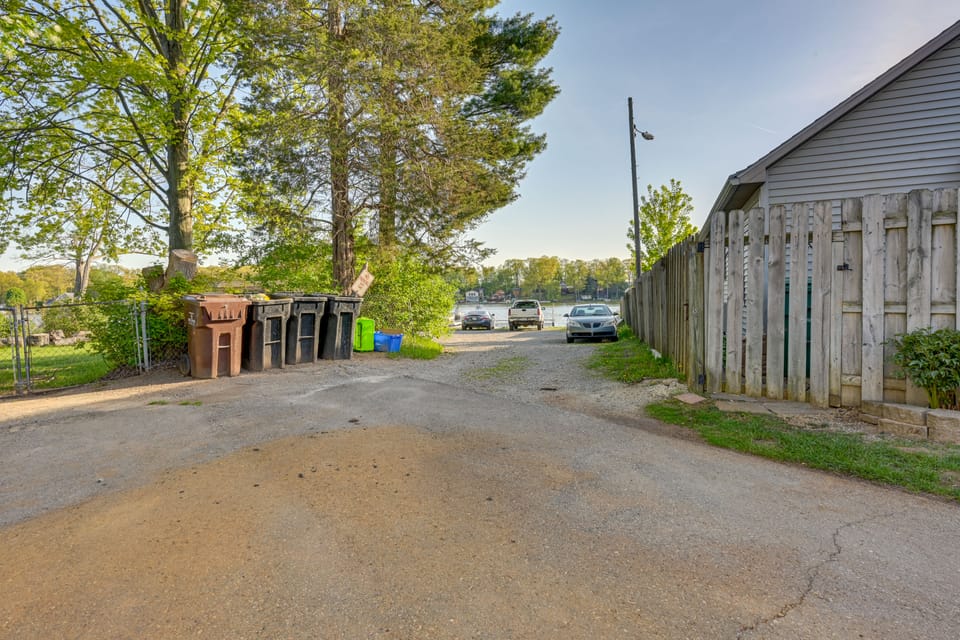 OUTDOOR LIVING: Private yard, patio, deck, gas grill, fire pit (firewood available), boat dock, dining area, swing chair, outdoor shower, ample seating, 17-foot Bennington pontoon boat, 2 kayaks, fishing poles, corn hole, 5-seat paddle boat, raft, hammock, water floats, Bluetooth stereo, floating water raft/pontoon