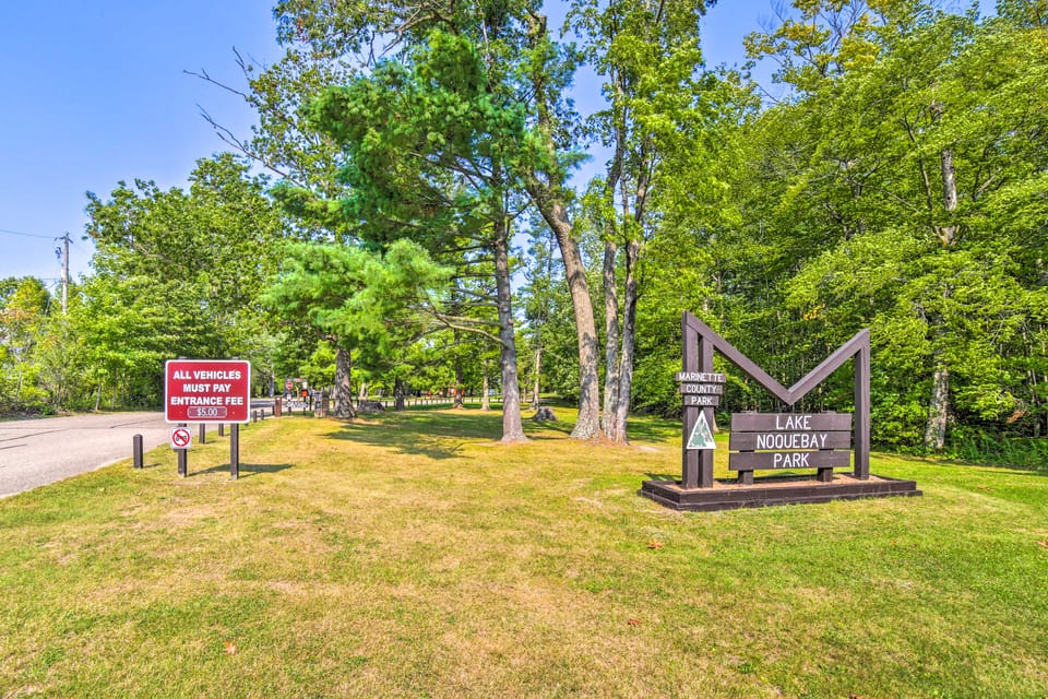 Lake Noquebay Access | Gas Grill | 3 Mi to Hunter's Glen Golf Club
