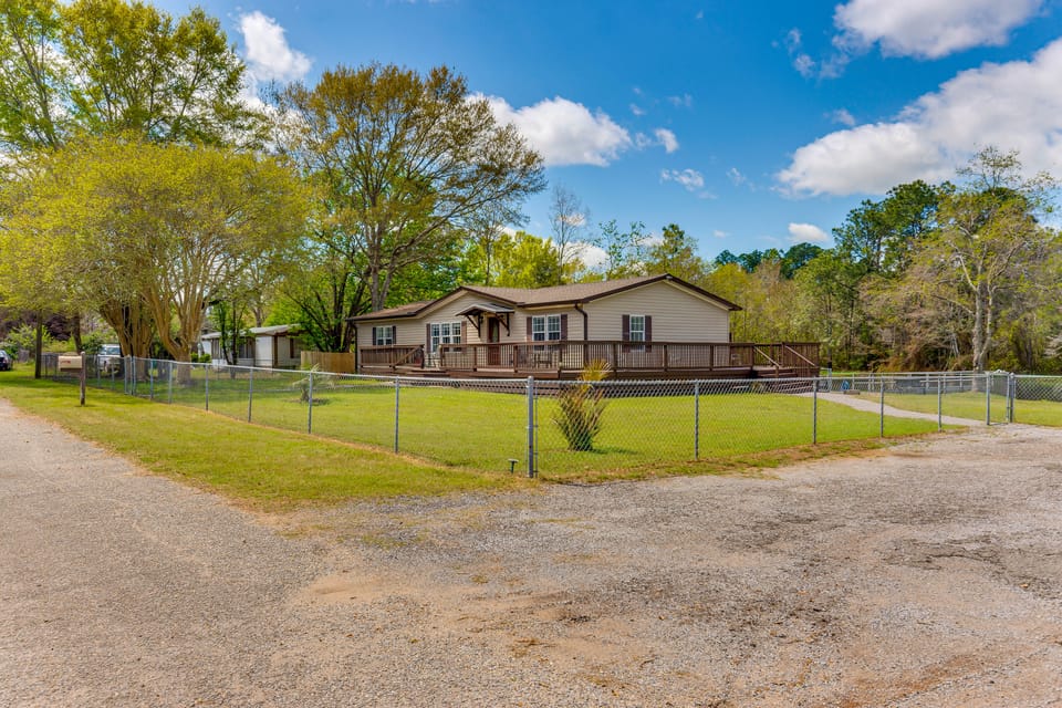 Slow down and enjoy a peaceful escape at this vacation rental in the suburbs of Pensacola! Boasting ample outdoor space and a stocked, 1-acre fishing pond, this home makes it easy to reconnect with nature and loved ones. Looking to venture out? Swim at scenic Gulf beaches, take the kayaks out on the Perdido River, or explore downtown. Later, relax on the spacious deck and grill your fresh catch!