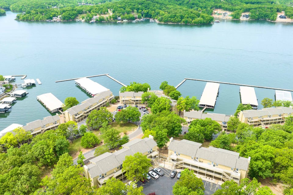 Experience laid-back lake living when you stay at this Osage Beach vacation rental! Perfect for a family getaway, this 2-bedroom, 2-bath condo offers an open interior with floor-to-ceiling windows and a screened balcony overlooking the lake. After days spent boating, lounging by the pool, or exploring nearby state parks, you can fire up the grill for an al fresco dinner and cozy up for a movie night in the living room.