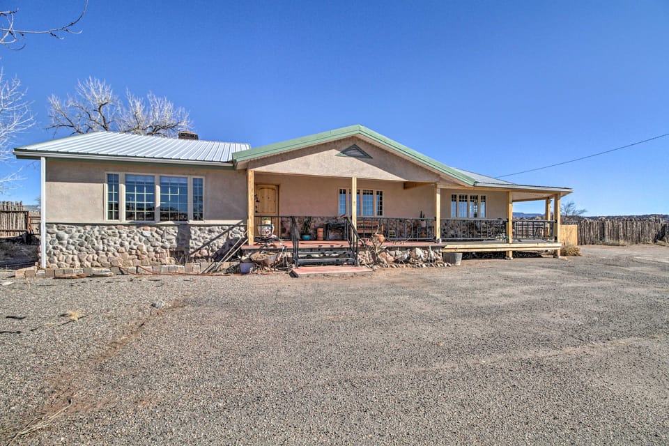 Escape to the desert for some much-needed rest and relaxation at this San Ysidro vacation rental! Tucked into the foot of the Jemez Mountains of New Mexico, this 3-bedroom, 2-bath home offers a comfortable interior and grants you access to numerous and unique southwestern experiences. Watch horses receive the care they deserve at Tamaya Horse Rehab from the wraparound porch. Drive down to Albuquerque to see the Balloon Fiesta or go to Santa Fe National Forest for great hiking and sightseeing.