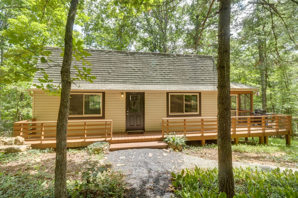 Mountain serenity and laid-back vibes await at this 2-bedroom, 1-bath vacation rental cabin in Broadway. Featuring a cozy interior and updated bathroom, this cabin is perfect for small families or groups. Soak your worries away in the hot tub or unwind and sip coffee on the screened deck. When adventure calls, hike nearby trails or tour local vineyards. Book your next escape today!