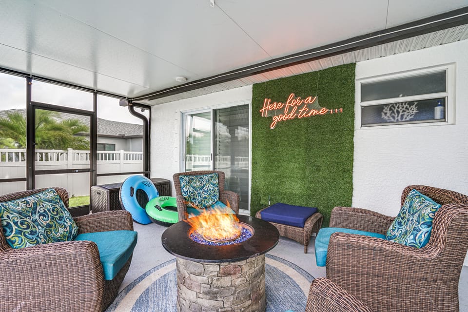 Furnished Lanai | Fire Pit (Gas) w/ Seating | Gas Grill & Griddle (Propane Provided) | Private Yard | Video Game Console (Over 300 Games)