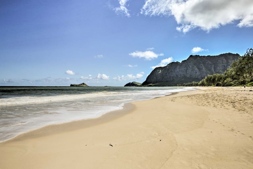 Your worries will melt away at this 3-bedroom, 2.5-bath vacation rental home on the shores of Waimanalo Beach. Unwind with the family on your private patio, nestled in a tropical garden, or head up to the ocean-view deck for afternoon cocktails. The home offers a pergola, tropical garden, and picturesque path to the sea to visit the ivory shoreline. If that's not enough, enjoy a day trip to Honolulu or Kailua! Visit the Sea Life Park Hawaii, the iconic Iolani Palace, or walk to Sherwood Beach.