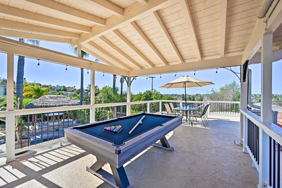 Leave your worries behind for a relaxing Golden State getaway at this well-appointed Vista vacation rental. Featuring an outdoor kitchen, a spacious pool, and a 2nd-story deck with lush views, this 3-bedroom, 2.5-bathroom home is the perfect private oasis for any group! Step inside to find a cozy living area, Smart TVs, and a fully equipped kitchen. When you're ready to explore the coast, take the short drive to Tamarack State Beach, Oceanside Pier, and other SoCal hotspots.