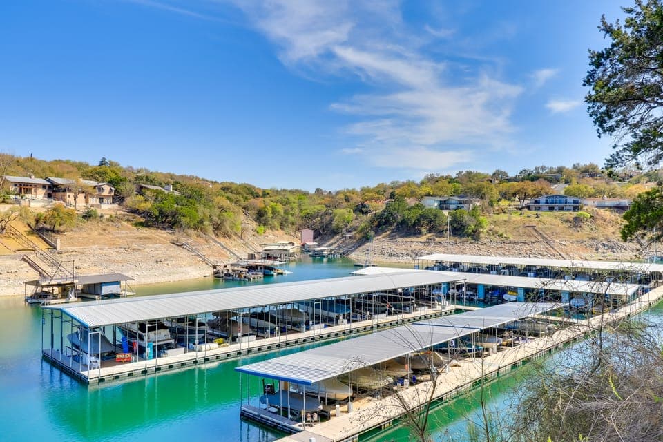 Find your bliss among the serene views of Lake Travis from this top-floor 3-bed, 3-bath Lakeway vacation rental with a loft and the best lake views in Marina Village Cove! This condo — with a full kitchen, 5 Smart TVs, and a covered balcony — will be an ideal launching point for endless lake days. Trailblaze through Pedernales Falls State Park, enjoy a dip at the historic Hamilton Pool Preserve or break out the golf clubs at Lions Municipal Golf Course. No matter the season, exploration awaits!