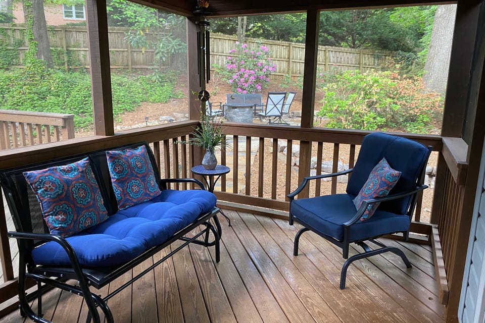 We enjoyed our stay! The house was clean and updated. It was in a good location, nice and quiet neighborhood. We especially loved the back porch where we had our morning coffee each morning and also glass of wine in the evening.