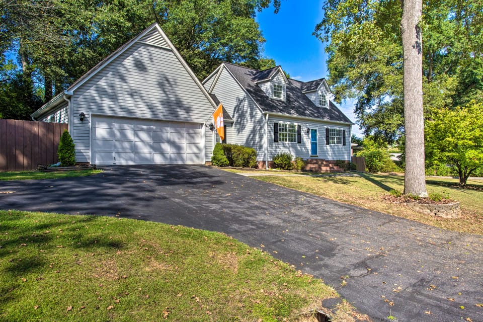 Pack your Tiger orange and head to this 3-bedroom, 2.5-bath vacation rental in the heart of Clemson. With updated finishes, a private backyard, and only a 2-mile walk from Memorial Stadium, this home is the perfect home base for gameday weekend trips. Prepare your tailgate spread in the modern kitchen or watch game highlights on the large Smart TV. Before kickoff, grab a bite to eat at an off-campus staple like Todaro Pizza and TD’s of Clemson or head to Twelve Mile for a swim in Hartwell Lake!