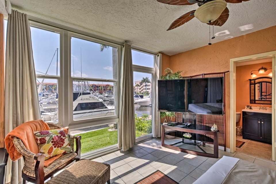A peaceful waterfront retreat, this 2-bedroom, 2-bathroom vacation rental home is located on an island on North Naples Bay! The tastefully furnished condo features a vibrant interior with beach-themed accents, a full kitchen, large picture windows with views of the harbor, and so much more! Whether you're in town to cast a line off of Naples Pier, work on your swing at Naples Bay Resort, or soak up the sun at Naples Beach, this is the perfect southwest Florida home-away-from-home.