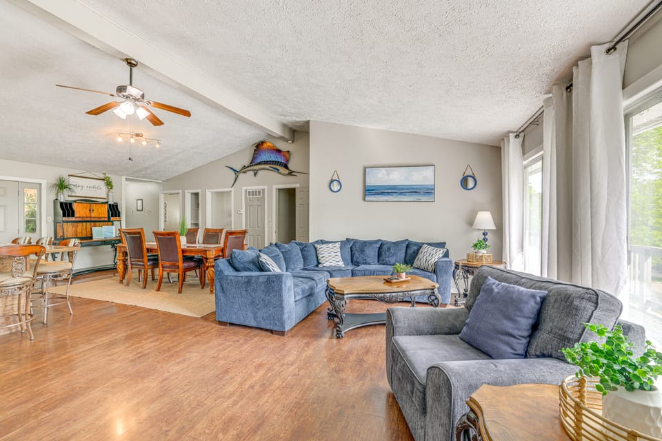 Get out of the city and retreat to this peaceful 4-bed, 2.5-bath vacation rental near Table Rock Lake! Unwind on the shaded deck after spending the day out on the water, or head inside to kick back and enjoy a movie night or home-cooked meal. Whether you gather around the fire pit on-site, hike through Roaring River State Park, or venture into Branson for live entertainment, this Shell Knob home lets you do it all!