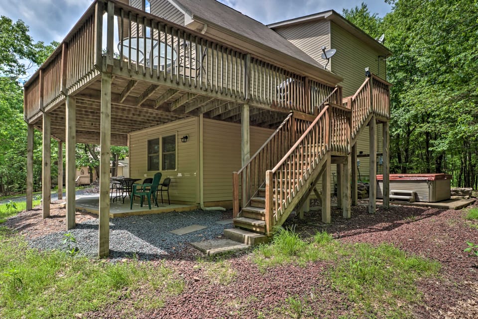 Deck, Hot Tub & Game Room: Lake Harmony Home