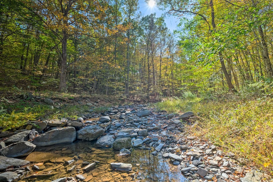 Looking to escape the hustle and bustle of the city? Book an unforgettable getaway to East Durham and stay at this cozy 3-bedroom, 2-bathroom home. Upon your arrival to this vacation rental, ideal for families or large groups, you'll be greeted by the sounds of the on-site stream and the beauty of towering trees. You're sure to love lounging on the large deck or roasting marshmallows over the fire pit after days spent shredding the slopes at Windham Mountain Resort.