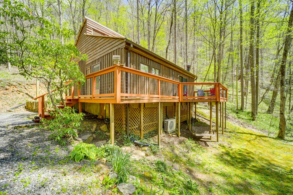 Soak up the natural beauty of the Smoky Mountains from this Whittier vacation rental! With a serene wooded location near scenic hiking trails and river recreation, this 2-bedroom, 1-bath cabin is perfect for a memorable North Carolina retreat. At ‘Creekside Getaway,' you can spend tranquil days fishing in the creek or relaxing in the hammock before grilling up a BBQ feast and gathering for s'mores by the fire pit.