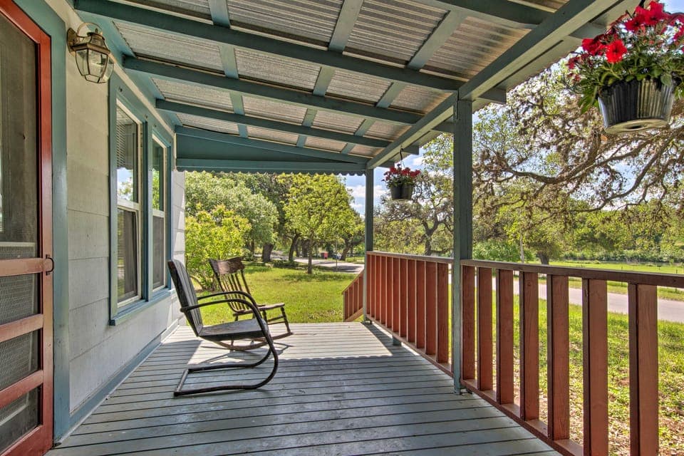 In need of a little getaway? We thought you might be! Nestled just steps from Blanco State Park, this updated 1920's farmhouse offers a peaceful retreat for all. The river views, visible from the front porch or the treehouse perched in an ancient oak, ensure this! Spend your time tasting vino at vineyards or exploring the outdoors like Pedernales Falls State Park. Contrast your on-the-go days with relaxing nights around the 2-bed, 1-bath vacation rental's fire pit.