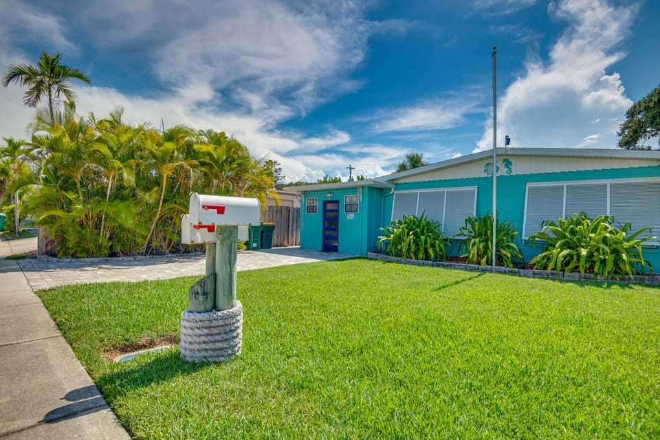 This Florida beach house invites snowbirds and surfers alike to enjoy the sunshine and good vibes of Cocoa Beach! Spend your days lounging on the sands of Cocoa Beach, explore the bars and restaurants on Main Street, or stroll along the historic Westgate Cocoa Beach Pier. This colorful 2-bedroom, 1-bath vacation rental also has all the at-home perks you need for a carefree stay, including plenty of entertainment options in the detached game shed and a fenced yard for your furry travel buddies.