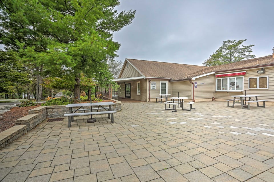 Escape to the serene woodland setting of this 3-bed, 1.5-bath Tobyhanna home. Nestled just minutes from Lake Carobeth, the stylish vacation rental offers convenient access to a lakeside beach, an outdoor pool, and much more, serving as the perfect home base for your Poconos getaway. Spend summer days kayaking and canoeing across the lake while winter days are most fulfilled racing down ski slopes at Camelback Mountain Resort. Ease into a relaxing evening with an at-home barbecue or movie night!