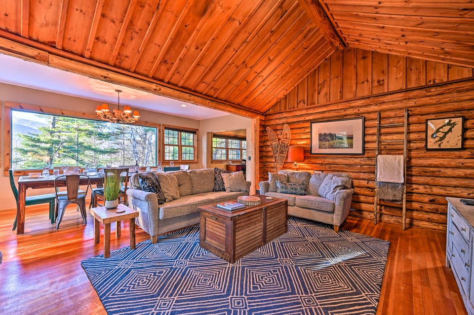 Indulge in a refined mountain lodge experience when you stay at this expansive 4-bedroom, 2-bath cabin! Nestled just minutes from the scenic trails of Whiteface Mountain, this Wilmington vacation rental offers all the space and amenities needed for a relaxing getaway, including a hot tub, fire pit, and an inviting interior brimming with East Coast charm. Head out to Lake Placid for the day and explore the lakeside eateries, and later, return to the cabin just in time for movie night by the fire!