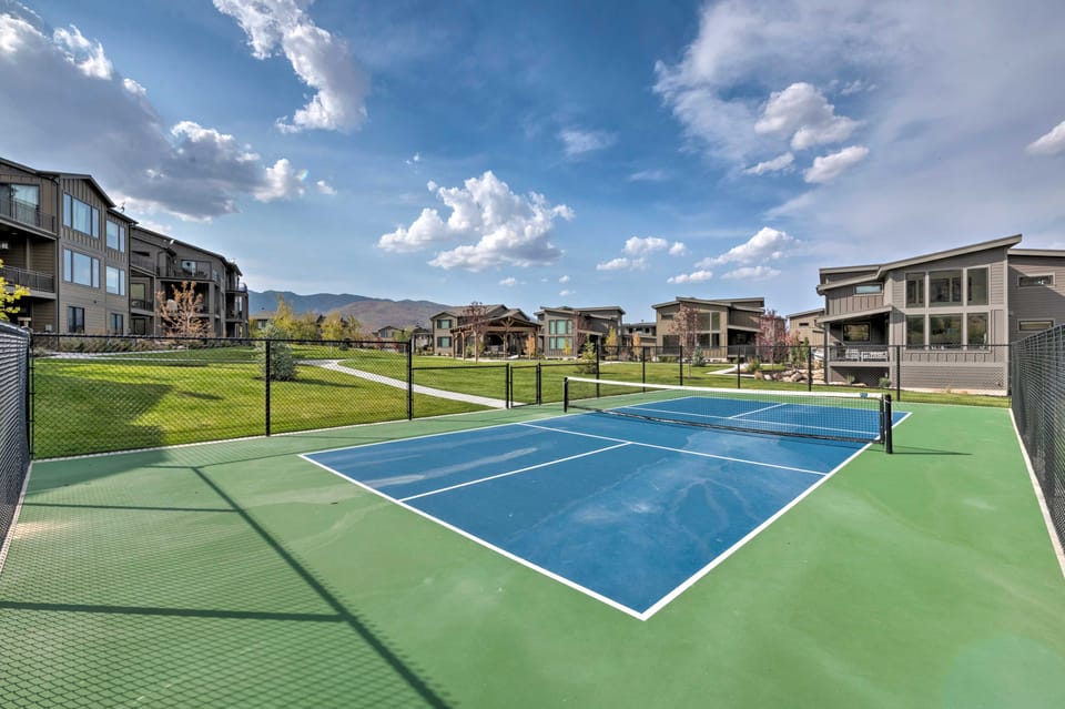 COMMUNITY AMENITIES: Fenced seasonal outdoor heated pool, year-round hot tub access, private walk-up beach access (2-minute walk), Pineview Reservoir access, pickleball court, horseshoe pit, covered picnic pavilion, fire pit, bocce ball