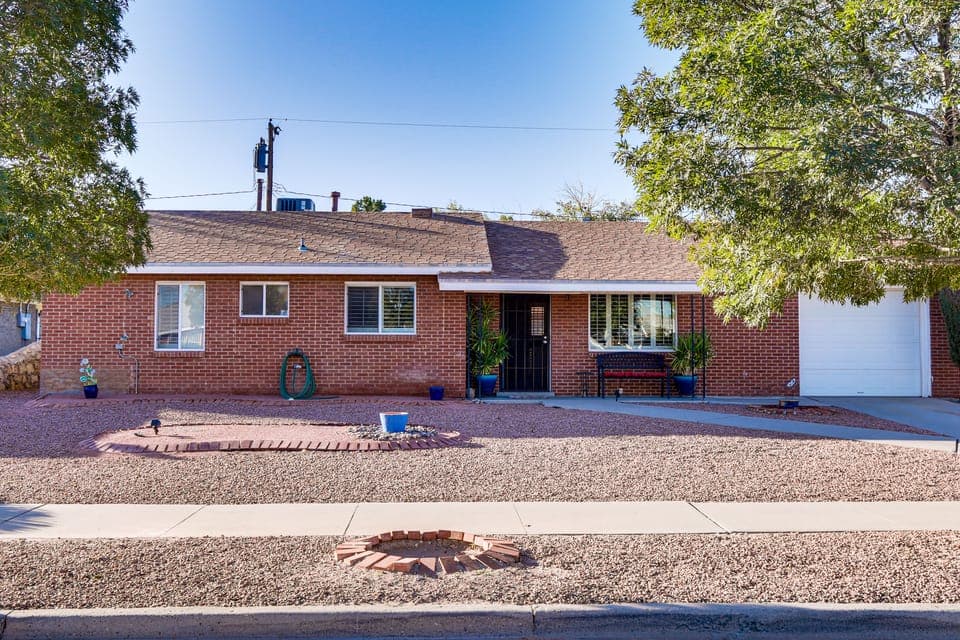Let relaxation wash over you at this renovated El Paso retreat. This 3-bed, 2-bath vacation rental features a fenced yard with 2 fire pits and a BBQ-ready patio, making it an ideal base for outings to the zoo, restaurants, and parks — all within 10 miles of your door. Whether you're looking to get away, hike in Franklin Mountains State Park, or see family at Fort Bliss, this home lets you do it all with ease. Book now!
