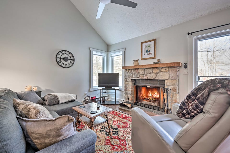 You're in for an adventure-filled getaway at this 2-bedroom, 1-bath Lake Harmony vacation rental, as you'll have easy access to hot spots like Hickory Run State Park and Big Pocono State Park. Boasting vaulted ceilings, a deck, and a lovely fireplace, this abode is ready to host your next ski trip or summer vacation!