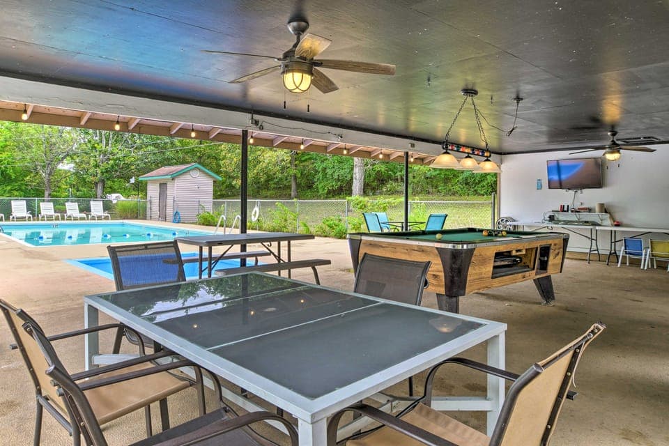 Yes, a swimming pool is available for use at Relaxing Lakeview Retreat in Reeds Spring w/ Deck. Enjoy the water!