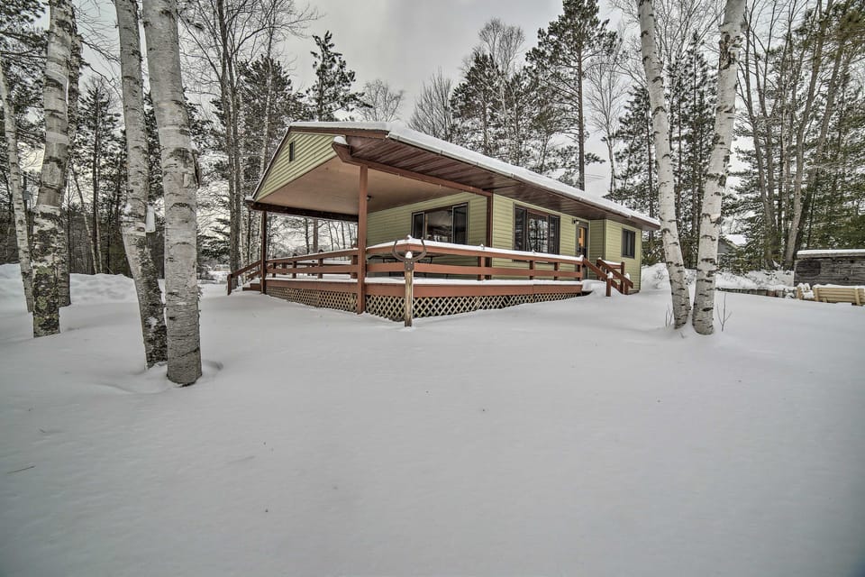 Nestled in Hiawatha National Forest along Gooseneck Lake, this Manistique vacation rental cabin is the ideal place to unplug and rejuvenate. The cabin features 2 bedrooms and 1 bathroom to accommodate your crew in comfort. Unwind on the spacious covered deck, spend the day out on the crystal clear water, and stargaze beside the stone fire pit. With Pictured Rocks 30 miles away and Mackinac Island a 2-hour drive from the cabin, any visit here will be one for the books!