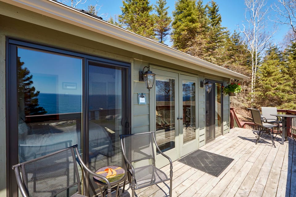 OUTDOOR LIVING: Shared deck w/ seating overlooking Lake Superior