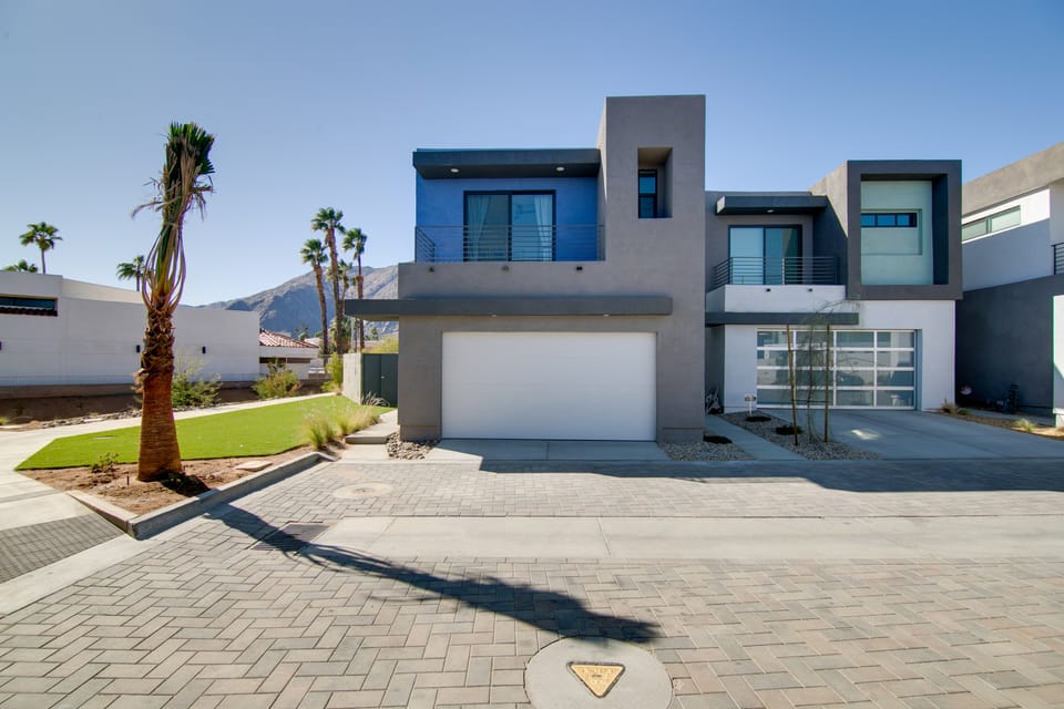 Relax in style at this modern home in Palm Springs! The 3-bedroom, 4-bathroom vacation rental boasts a private pool, a contemporary living space, and panoramic mountain views from the sun deck. Head out to explore with a scenic ride on the Palm Springs Aerial Tramway, hike through Tahquitz Canyon, or spend a relaxing day on the greens of the Escena Golf Club. Book a trip to dance the day away at the Coachella Valley Music & Arts Festival, only a 26-mile drive from your luxurious home base!