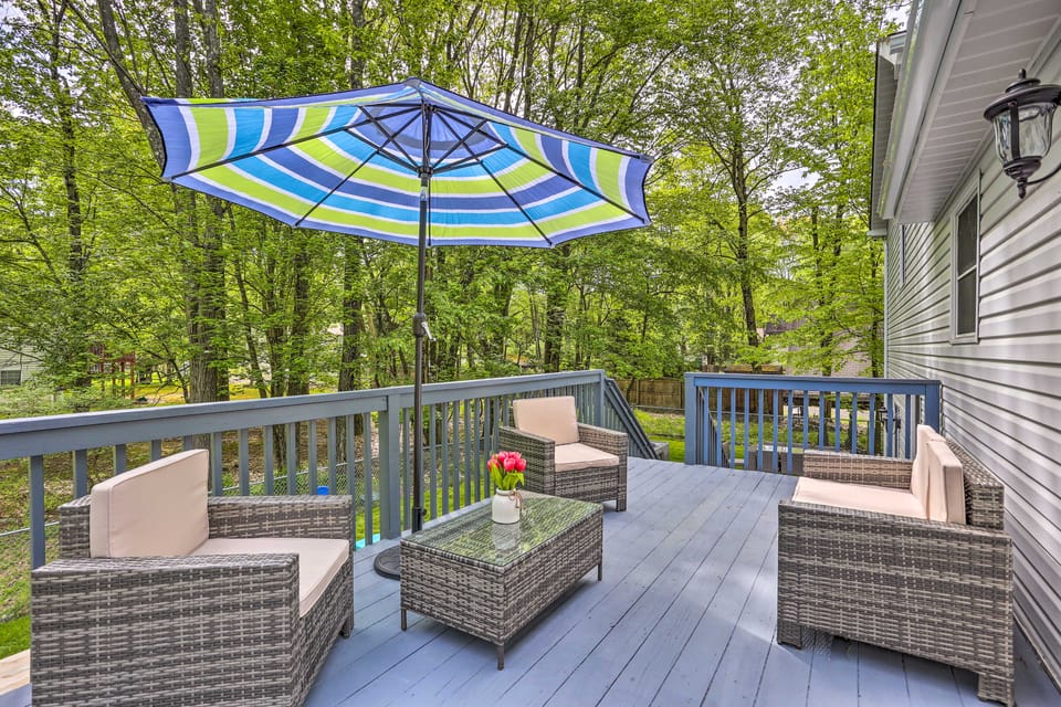 Channel your inner kid and indulge in some good old-fashioned lake fun at this 4-bedroom, 3-bathroom Pocono Summit vacation rental. This 2-story house is perfect for a family getaway or a lake lover's retreat. Start your mornings with an al fresco meal on the deck and end your days tallying your scores in the game rooms. Chase the powder at Camelback Mountain Resort, make a splash at Kalahari Waterpark, or trailblaze through Tobyhanna State Park.