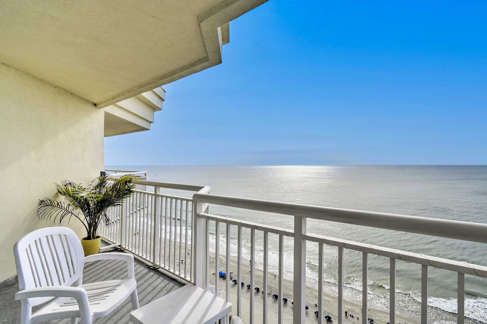 Take in panoramic ocean views from the comfort of your own private balcony when you stay at this 2-bed, 2-bath vacation rental located in North Myrtle Beach. This penthouse is fully equipped with a gourmet kitchen, beach access, and multiple pools! Spend your days taking advantage of the many on-site amenities, and don't forget to check out the exciting nearby attractions of the Grand Strand.