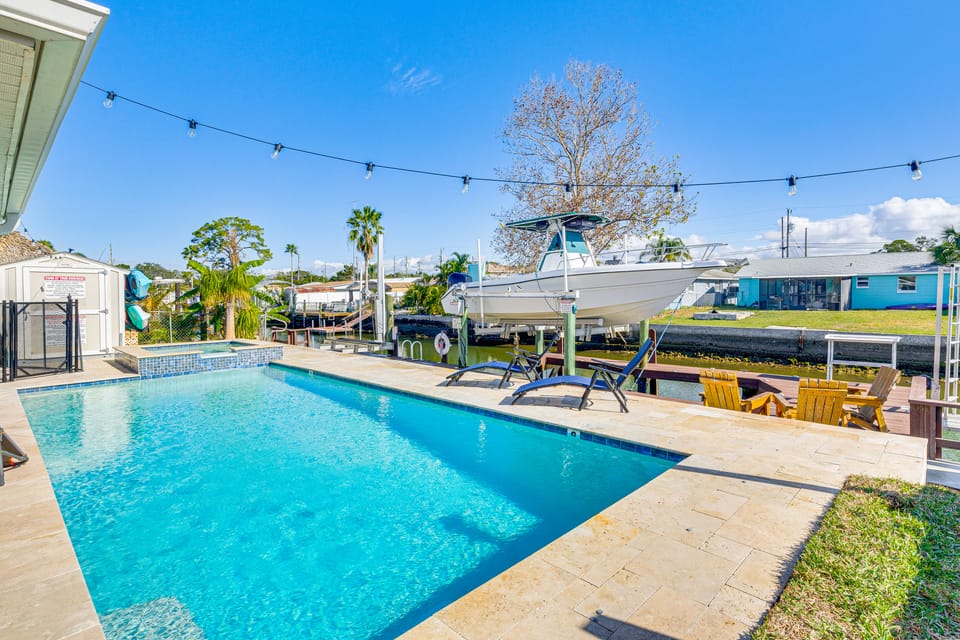 Experience the ultimate Gulf Coast getaway when you book this newly renovated 3-bedroom, 3-bath vacation rental. Boasting a private dock, screened-in lanai, private pool, spa, and game room, this waterfront home is perfect for hosting family and friends. Spend your day fishing, kayaking to Hudson Beach, or take your boat out to the Gulf of Mexico. When you're not out on the water or lounging poolside, head down the road to Sam's Beach Bar or venture inland to visit the Tarpon Springs Aquarium!