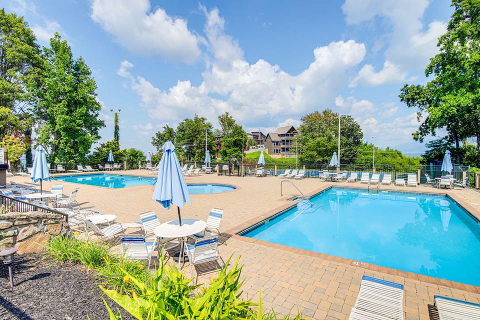 Yes, a swimming pool is available for use at Stunning Views, Hot Tub, 3 Decks: Gatlinburg Cabin. Enjoy the water!