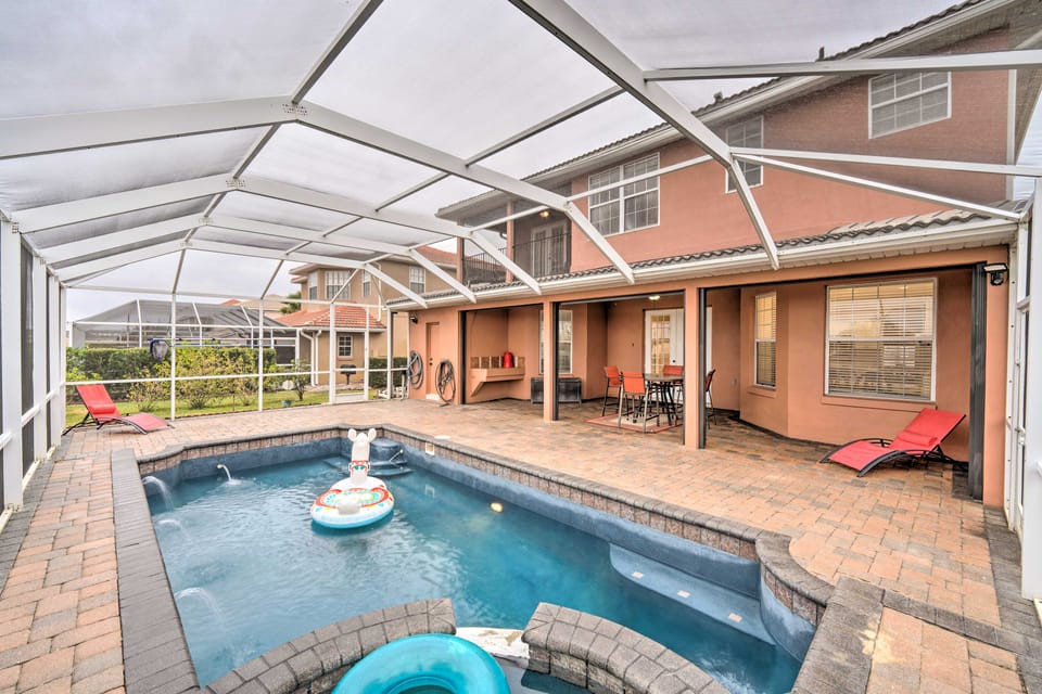 Whether you’re a Disney aficionado, a Universal enthusiast, or both, this spacious Davenport home puts you within driving distance of both iconic theme parks! Boasting 5 bedrooms, 5 full bathrooms, and 1 half bath, your family can stay comfortable while being thoroughly entertained. A private indoor pool, game room, and poker table ensure fun even without leaving home, and a full kitchen can easily accommodate delicious home-cooked meals. Plus, the enclosed balconies are perfect for stargazing!