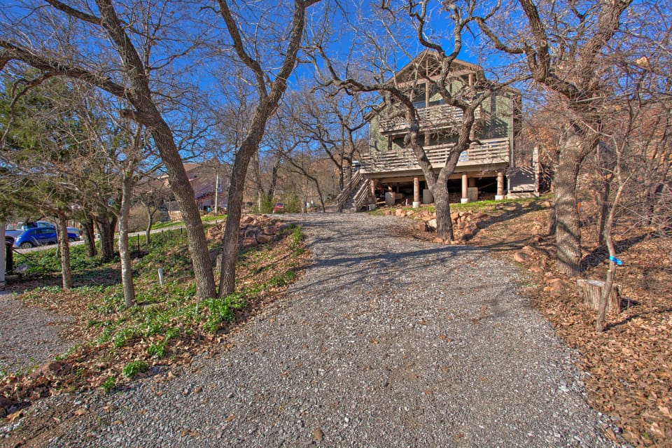 For the perfect blend of nature and in-town dining and shopping, look no further than this beautiful Medicine Park cabin. The 3-bedroom, 2.5-bathroom vacation rental is equipped with amenities for all ages, including a kid's play corner, Smart TV, a fully equipped kitchen, and ample outdoor entertainment space! When you’re not admiring the tree-speckled views directly from the deck, venture out for a day on the water at Lake Lawtonka, where you can fish, swim, boat, and more.