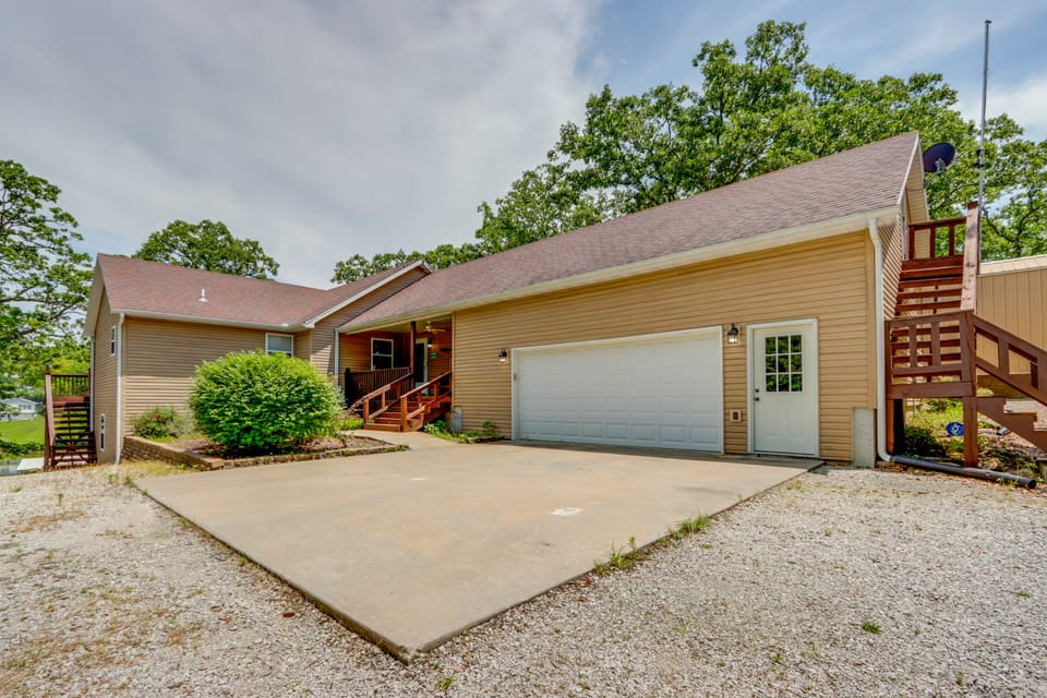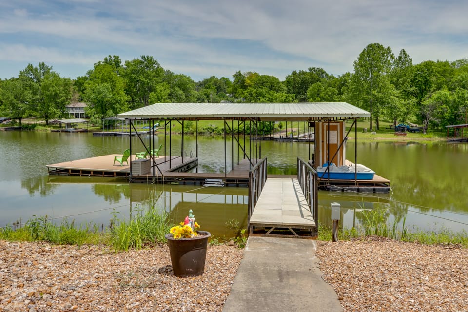 Book a fun-filled stay at this lakefront Warsaw vacation rental! Located on a secluded 1-acre lot in the Golden Shores subdivision, this 4-bedroom, 3-bath house offers privacy and access to the Lake of the Ozarks. Spend time relaxing in the family rooms, swimming in the quiet cove, or boating. Venture out and you'll be just a short drive from Drake Harbor and Truman Lake. Whether you're planning a family getaway or a remote-work retreat, you'll have all the comforts needed at this spacious home!