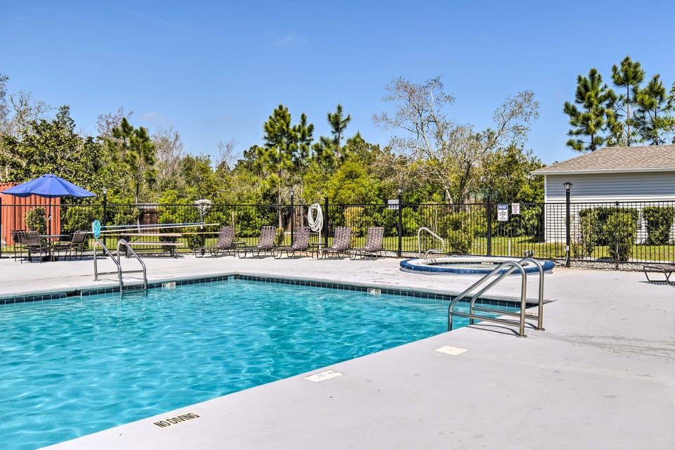 Yes, a swimming pool is available for use at 5 Mi to Beach: Gulf Shores Condo w/ Perks!. Enjoy the water!