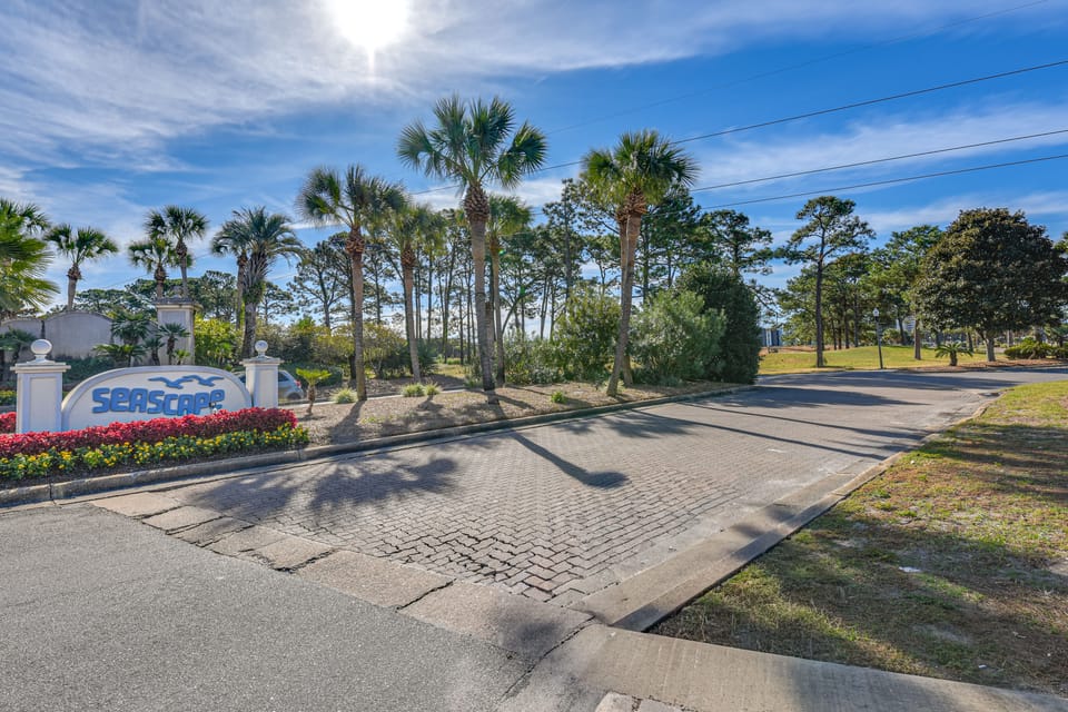 Kick off your shoes and stay awhile — this vacation rental is all about convenience and coastal living! The 2-bedroom, 2-bath condo is in Seascape Resort, placing you steps from several community pools, pickleball courts, and Emerald Coast beaches. After a day of exploring the shore, golfing, and shopping at Silver Sands, open up the sliding door and enjoy family movie night with a salty breeze.