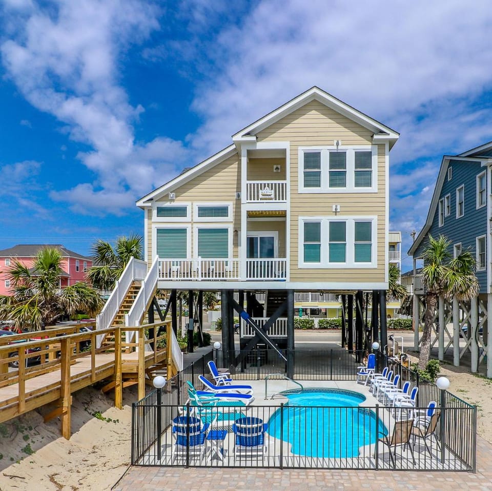 Soak up the beauty of Garden City in our House, Beachfront- 1st row!: 6bedroom/4 bath sleeps 16. With a range of amenities such as Air conditioning, Balcony/Terrace and Dryer, you'll feel right at home.