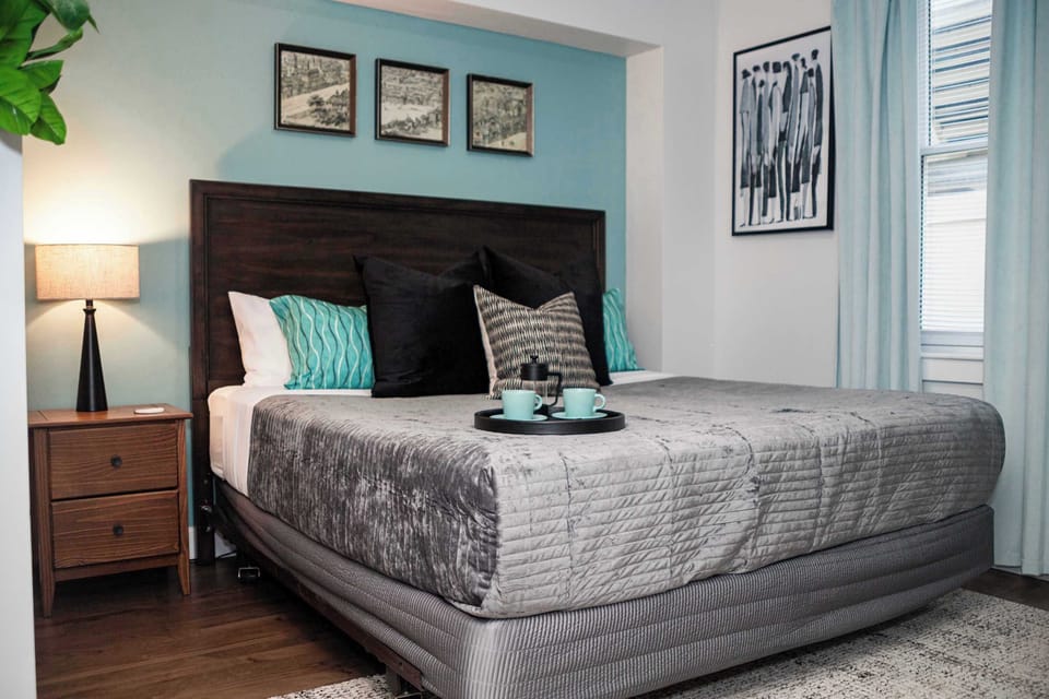 We'd love to host you in these freshly renovated 1 BR apartments in downtown Jax. These apts are steps away from dining, shows, the St John's River and all things Downtown Jacksonville has to offer. Book these lovely units for an event or corporate function nearby. Secure building with guest access only beyond the 1st floor. Each apt has dedicated workspace and seating, and a king sized bed in their bedrooms.
