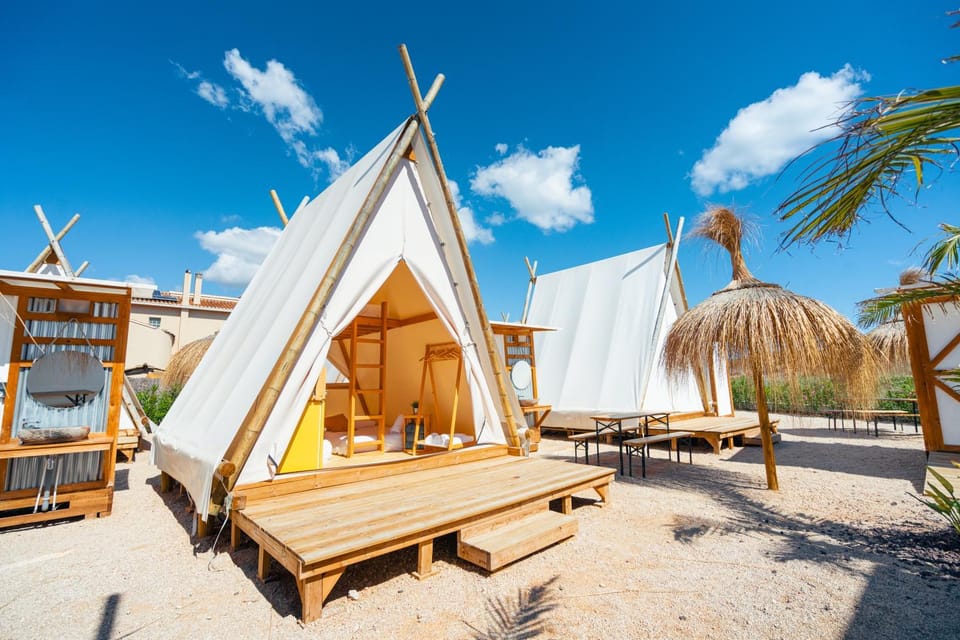 Falta sombra donde estaba la tienda, daba mucho el sol. No tenía nada de sombra la mayor parte del día, el resto si que tenían arboles. Los baños estaban muy sucios y embozados, la gente no es cuidadosa. Creo que faltarían baños para toda la gente que hay en el Camping. Lo ideal sería que estuviera todo el glamping junto, no como esta.