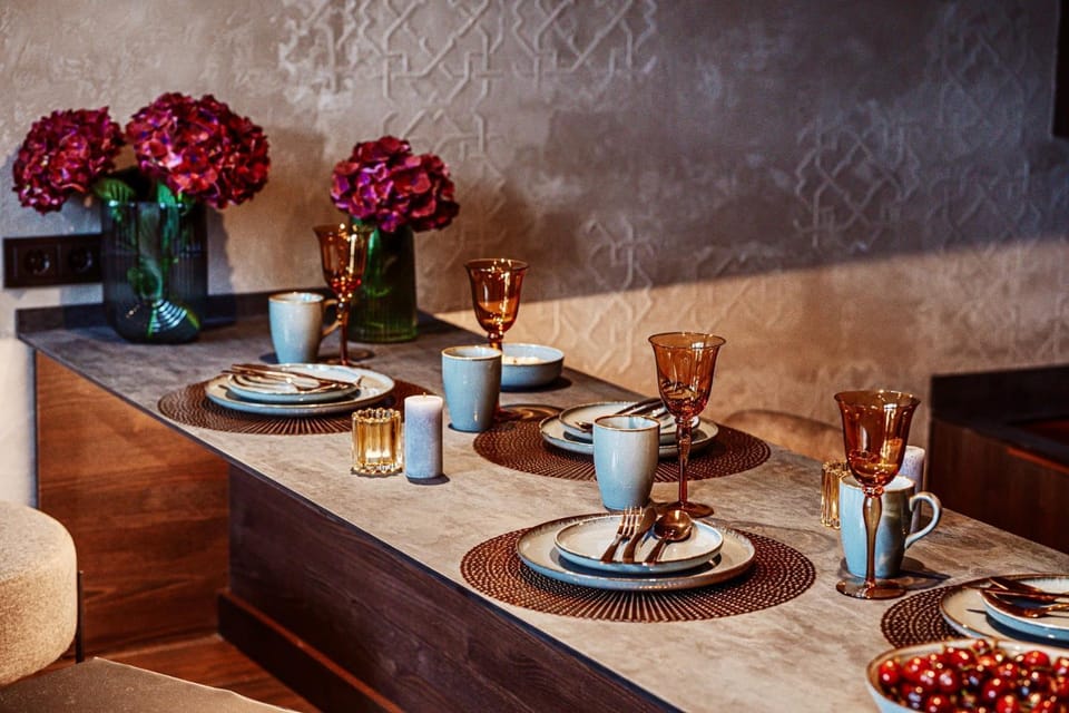 The apartment looks good. I liked the lowered kitchen area, spacious living area and the interior in general. The apartment is packed with almost everything you might need