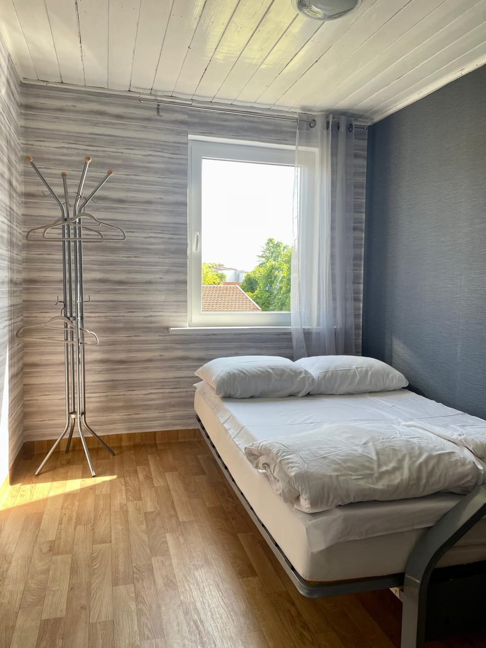 The guest house was located near the center, in quiet area. Parking was free of charge. The owner's dog was cute though barked a lot. Place itself was cosy and the garden area was nice and well maintained. Didn't bother that the shower and toilet were in another building.