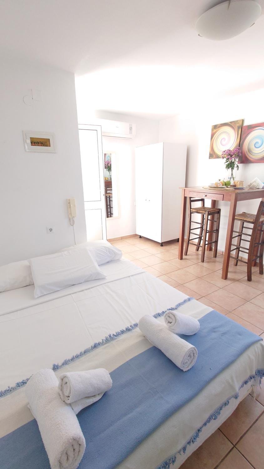 Cool studio with very comfortable bed, well equipped kitchen and bathroom