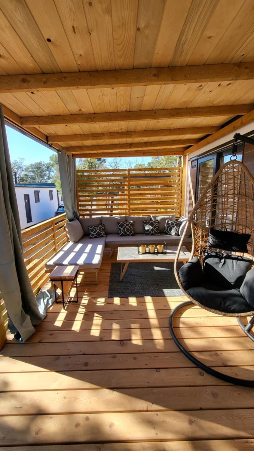 New house, perfect for a family holiday, located in back part of the camp = generally quiet location. The camp itself has exceeded our expectations, its clean and although there is a lot of people it does not feel to be overcrouded - compared to beachese which were really fully of people... But it is all you need for a perfect holiday in Croatia, you get a nice house in a nice camp, in a quite location so you will be happy with: