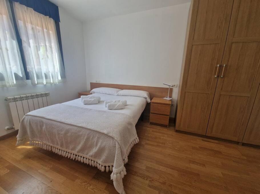 Es un apartamento amplio. Estaba muy limpio todo. Las camas eran cómodas, y las habitaciones espaciosas. Tenía todos los utensilios necesarios para cocinar. La plaza de garaje fue un gran punto a su favor.